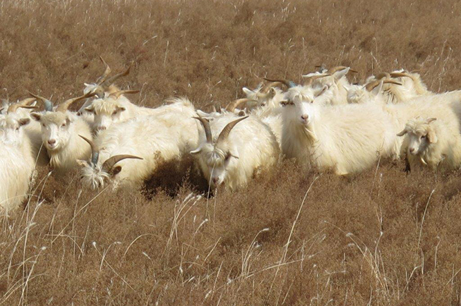 wintry undercoat of this bright cashmere goat. From each animal, each year, only about